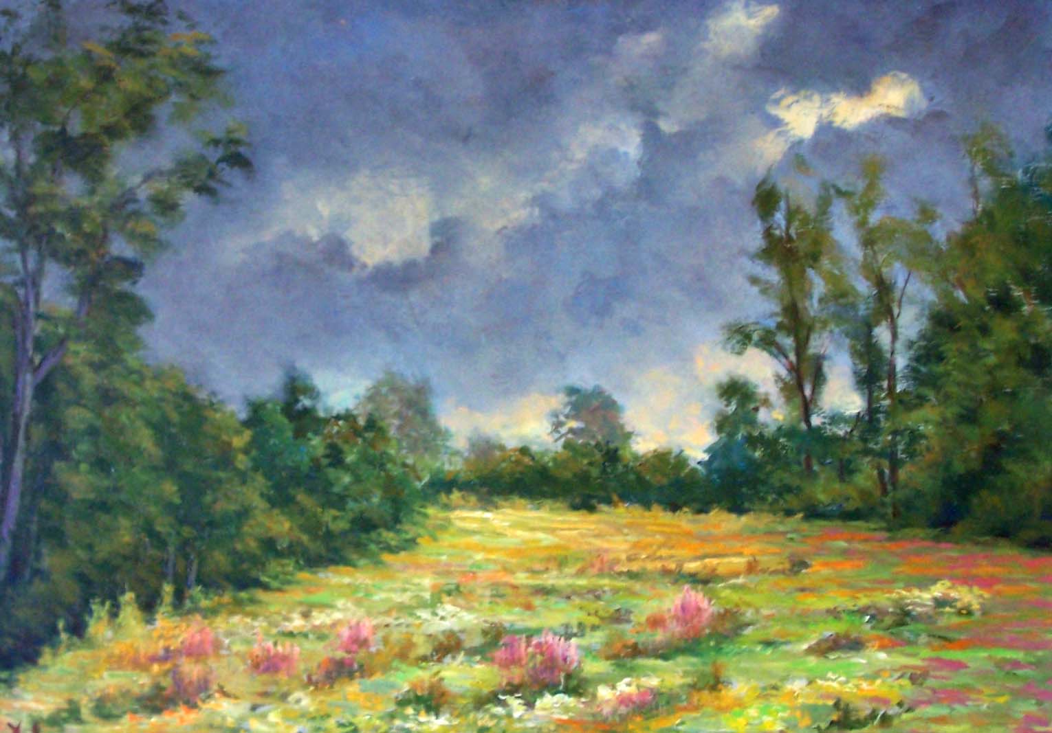 Partant avec son chevalet pliant, il parcourait les chemins a la recherche du "site" capable de l'emouvoir. Il preferait les ciels nuageux, voire orageux, frequents dans la Creuse.